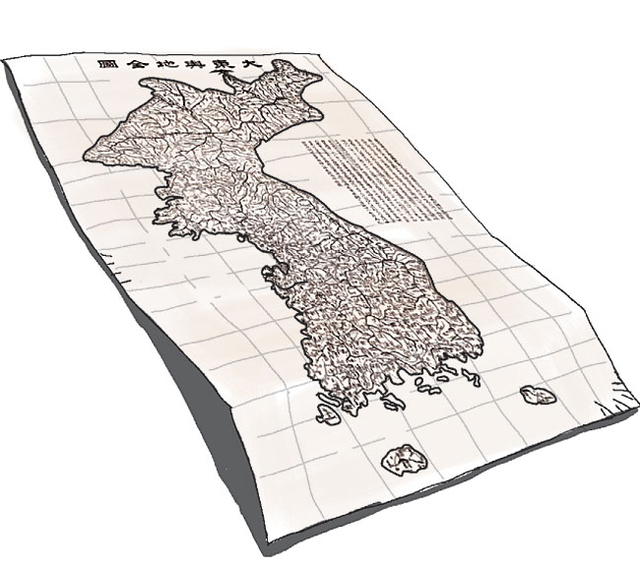 »êµµÀÇ »ê°ú »êÁÙ±â Ç¥Çö ¹æ½ÄÀ» Àû±ØÀûÀ¸·Î µµÀÔÇÏ¿© Èæ¹é µÎ °¡Áö »öÀÇ ´ëÁ¶¸¸À¸·Î ¿ì¸®³ª¶óÀÇ »êõÀ» ¾Æ¸§´ä°í ¿õÀåÇÏ°Ô ±×·Á³½ Áöµµ°¡ ÀÖ¾úÀ¸´Ï, ¹Ù·Î ±èÁ¤È£ÀÇ ¸ñÆÇº» ¡®´ëµ¿¿©Áöµµ¡¯(1861)´Ù. Àü±¹À» °¡·Î 20§¯¡¤¼¼·Î 30§¯ Å©±âÀÇ »ç°¢ÇüÀ¸·Î Àß¶ó ÃÑ 22øÀÇ º´Ç³½Ä Áöµµ¸¦ ¸¸µé¾ú´Âµ¥, ¸ðµÎ ¿¬°áÇÏ¸é ³²ºÏ 6.6m¡¤µ¿¼ 4mÀÇ ÃÊ´ëÇü ¿ì¸®³ª¶ó Àüµµ°¡ µÈ´Ù.