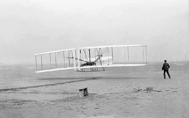 1903³â 12¿ù 17ÀÏ, ¹Ì±¹ ³ë½ºÄ³·Ñ¶óÀ̳ªÁÖ Å°Æ¼È£Å© ÇØ¾È. À̰÷¿¡¼ ¶óÀÌÆ® ÇüÁ¦´Â Àηù ÃÖÃÊÀÇ µ¿·Â ºñÇà(»çÁø)¿¡ ¼º°øÇÏ¸ç ¼¼°è Ç×°ø»ç¿¡ ÇÑ È¹À» ±×¾ú´Ù. ¡®ÇöóÀ̾î(Flyer)¡¯È£·Î ¸í¸íµÈ ºñÇà±â´Â ³ª¹«·Î »À´ë¸¦ ¸¸µé°í ±¤¸ñÀ» ¾º¿î µÚ À§¡¤¾Æ·¡ ³¯°³¸¦ ¹öÆÀÁÙ·Î ¿¬°áÇÑ ±¸Á¶¿´À¸¸ç, 81§¸ÀÇ °¡¼Ö¸° ¿£ÁøÀ¸·Î ÇÁ·ÎÆç·¯¸¦ µ¹·Á ÃßÁø·ÂÀ» ¾ò¾ú´Ù. ¿©±â¿¡ ³¯°³, ½Â°Å°, ¹æÇâ۸¦ ÅëÇØ Á¶Á¾ÀÌ °¡´ÉÇϵµ·Ï ÇÑ ´ç½Ã·Î¼´Â ȹ±âÀûÀÎ ±¸Á¶¿´´Ù. ¿ª»çÀû ¼ø°£ÀÇ ºñÇàÀº µ¿»ý ¿ÀºôÀÌ ¸Ã¾Ò´Ù. 12ÃÊ µ¿¾È 36m¸¦ ³¯¾Æ¿À¸¥ ÀÌ ÂªÀº ºñÇàÀº, Àΰ£ÀÌ °øÆ÷ÀÇ ¿µ¿ªÀÌ¶ó ¿©°å´ø ÇÏ´ÃÀ» Á¤º¹ÇÒ ¼ö ÀÖÀ½À» º¸¿©ÁØ ±â³äºñÀû »ç°ÇÀ̾ú´Ù.
